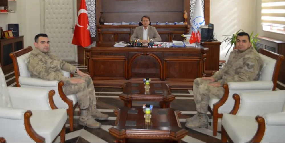 Baykan Kaymakamı Fatih Özcan, ilçeye yeni atanan Çelikli Jandarma Karakol Komutanı Astsubay Üstçavuş Erkan Hocaoğlu'nu makamında kabul etti.