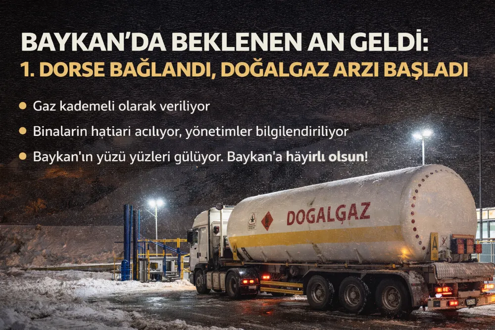 Baykan'da yaşanan doğalgaz krizi, ilk dorsenin bağlanmasıyla kritik eşiği geçti. Gaz arzı başlamış durumda ve süreç kontrollü biçimde ilerliyor.