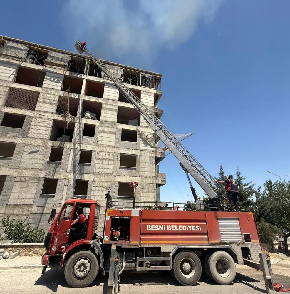 Edinilen bilgilere göre, Besni ilçesi 15 Temmuz Şehitler Mahallesi'nde yapımı devam eden bir binanın çatı katında kalıp tahtaları alev alarak yandı.