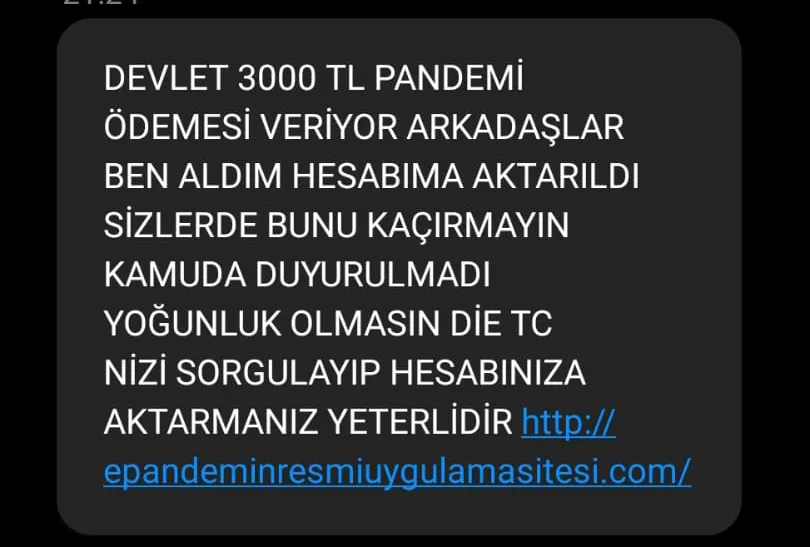 Dolandırıcıların özellikle "geri ödemesiz destek, yardım başvurusu onaylandı, hesabınız askıya alındı" gibi ifadelerle güven kazanmaya çalıştığı, paylaşılan bağlantılar üzerinden ise kişisel bilgilerin talep edildiği belirtiliyor. Uzmanlar, bu mesajların resmî kurumlarla hiçbir ilgisinin olmadığını vurguluyor.