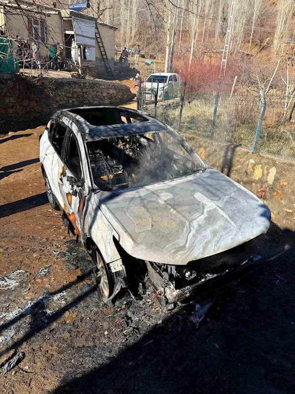 Bitlis'in Hizan ilçesinde park halindeki bir otomobil alev alarak kullanılamaz hale geldi.