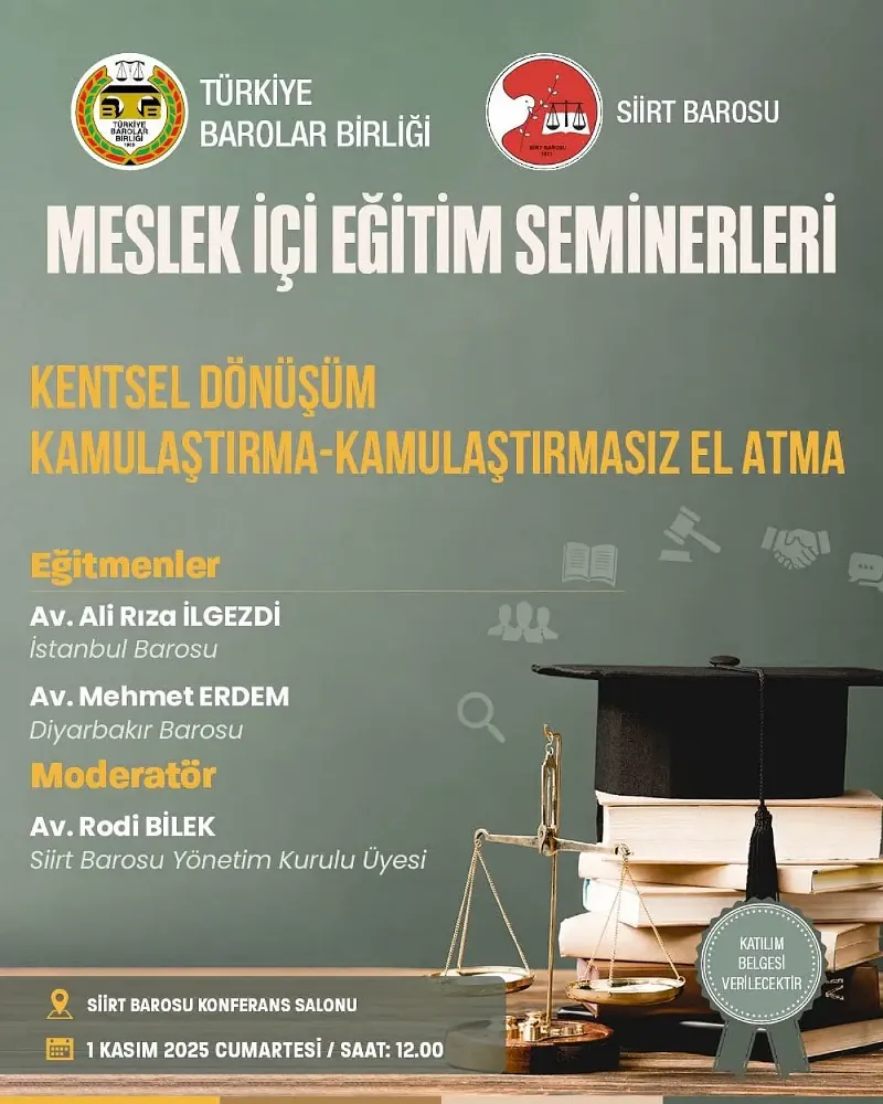 Siirt'te düzenlenecek bu seminer, sadece bir eğitim değil; hukukta güncel gelişmelerin nabzının tutulacağı bir buluşma olacak.