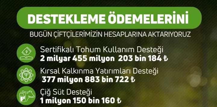 "İlimiz özelinde 2025 yılı sertifikalı tohum kullanım desteklemesi kapsamında 1.953 üreticimize 24.315.993,60 TL destekleme ödemesi yapılmıştır. Hayırlı ve bereketli olsun."