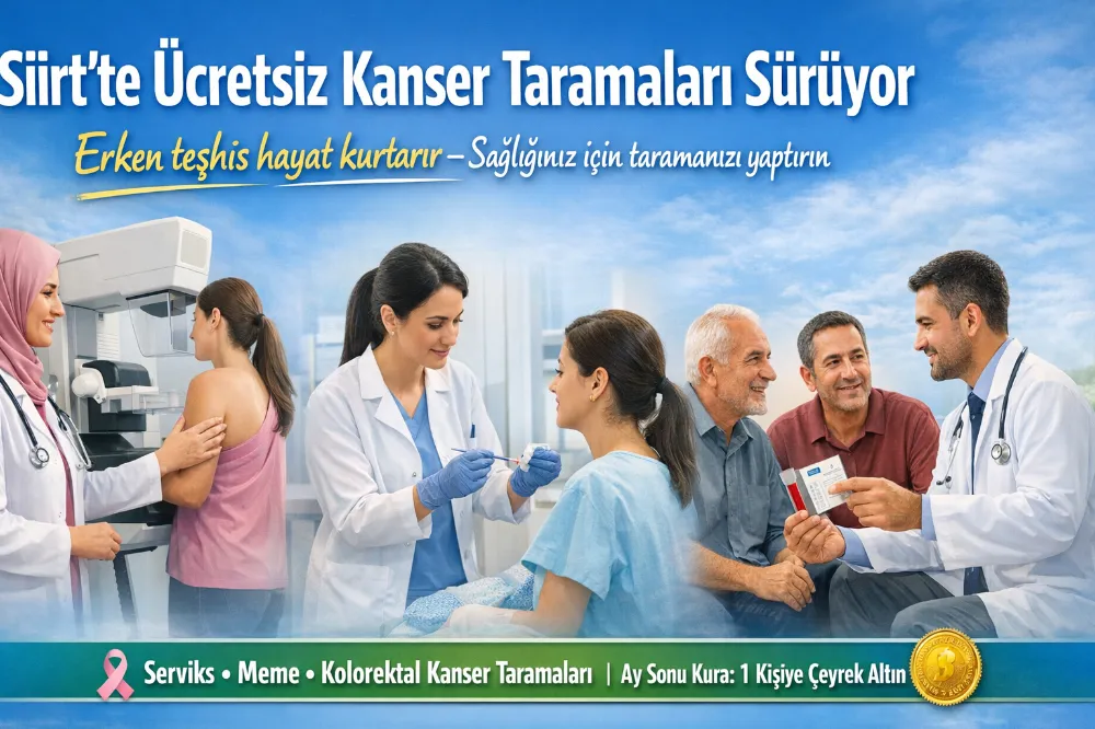 Siirt genelinde ve tüm ilçelerde yürütülen kanser tarama programları kapsamında, farklı yaş gruplarına yönelik ücretsiz sağlık taramaları düzenli olarak gerçekleştiriliyor.