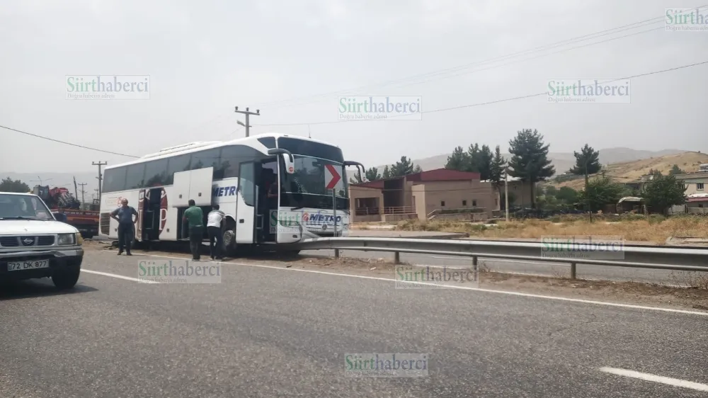 Olay, Siirt'in Baykan ilçesine bağlı Veyselkarani Beldesi girişinde meydana geldi. Edinilen bilgilere göre, 34 YK 0846 plakalı yolcu otobüsü, sürücüsünün kontrolünü kaybetmesi sonucu orta refüje girdi ve bariyerlere çarparak durabildi.