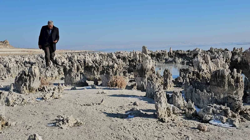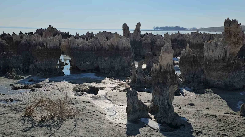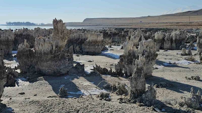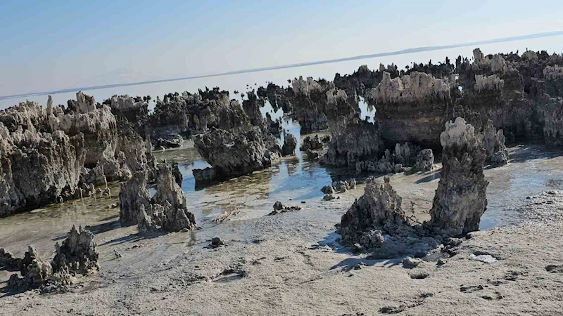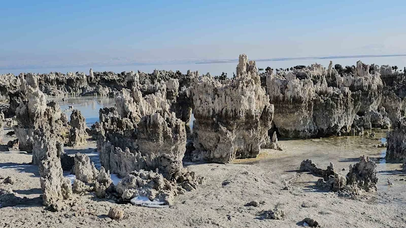 Etkisini her geçen yıl artıran kuraklık, yağışların azalması ve sıcaklıkla birlikte artan buharlaşma sonucu Van Gölü'nde su seviyesi düşmeye devam ediyor. Van Gölü'nün Bitlis'in Adilcevaz ilçesinin kıyı bandında suların çekilmesiyle sahilde yükselen mikrobiyalitler korkunç tabloyu gözler önüne seriyor.