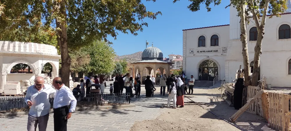 Günün erken saatlerinde başlayan çalışmalarda ekipler, türbe çevresindeki zemin düzeltme ve kaldırım yenileme faaliyetlerini aralıksız sürdürüyor. Türbeye gelen ziyaretçiler ise gölgelik alanlarda çay içerek hem dinleniyor hem de yapılan çalışmaları memnuniyetle izliyor.