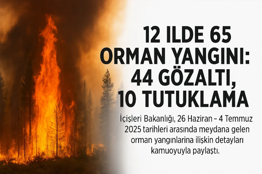 İçişleri Bakanı Ali Yerlikaya, 26 Haziran–4 Temmuz tarihleri arasında Türkiye genelinde meydana gelen 65 orman yangınıyla ilgili yürütülen adli süreçler hakkında bilgi verdi. Bakanlık açıklamasına göre, 12 ilde çıkan yangınlarla ilgili 44 şüpheli gözaltına alındı. Bunlardan 10'u tutuklandı, 6 kişi hakkında adli kontrol kararı verildi. 13 kişinin ifadesine başvurulurken, 15 kişi hakkında adli işlemler devam ediyor.