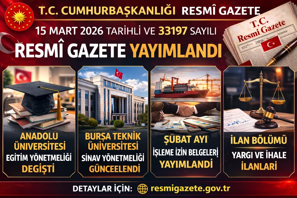15 Mart 2026 tarihli ve 33197 sayılı Resmî Gazete yayımlandı.