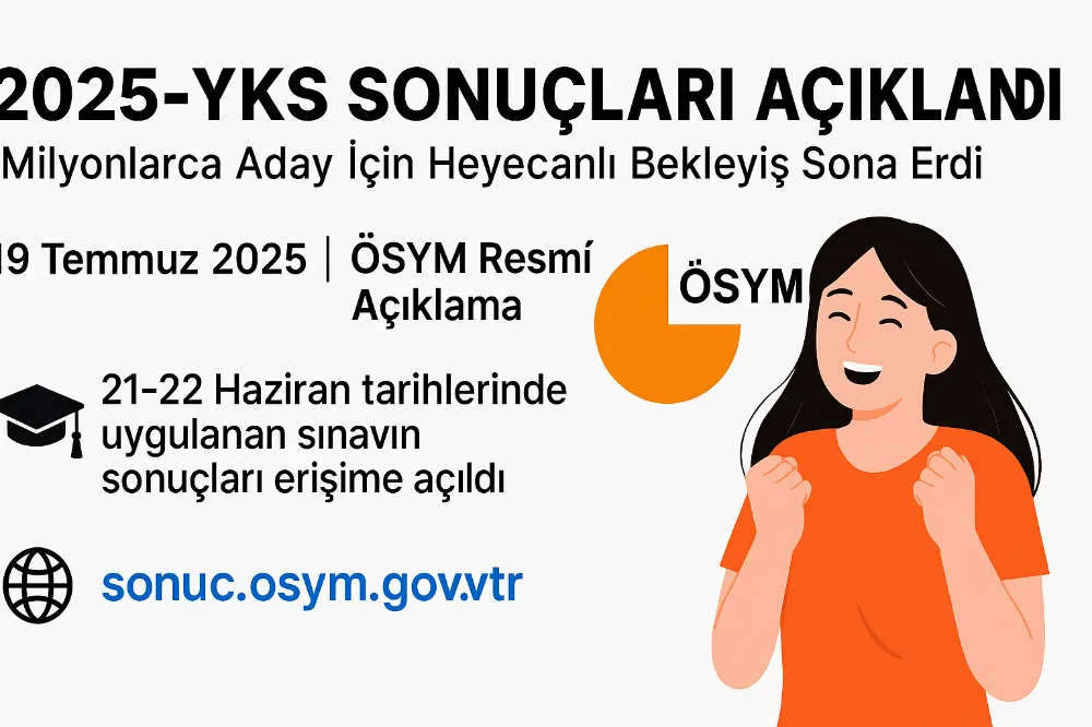 21-22 Haziran 2025 tarihlerinde gerçekleştirilen Yükseköğretim Kurumları Sınavı (YKS) sonuçları bugün itibariyle açıklandı. Ölçme, Seçme ve Yerleştirme Merkezi (ÖSYM), sonuçların değerlendirme sürecinin tamamlandığını belirterek adayların 19 Temmuz 2025 Cumartesi gününden itibaren sonuçlara erişebileceğini duyurdu.