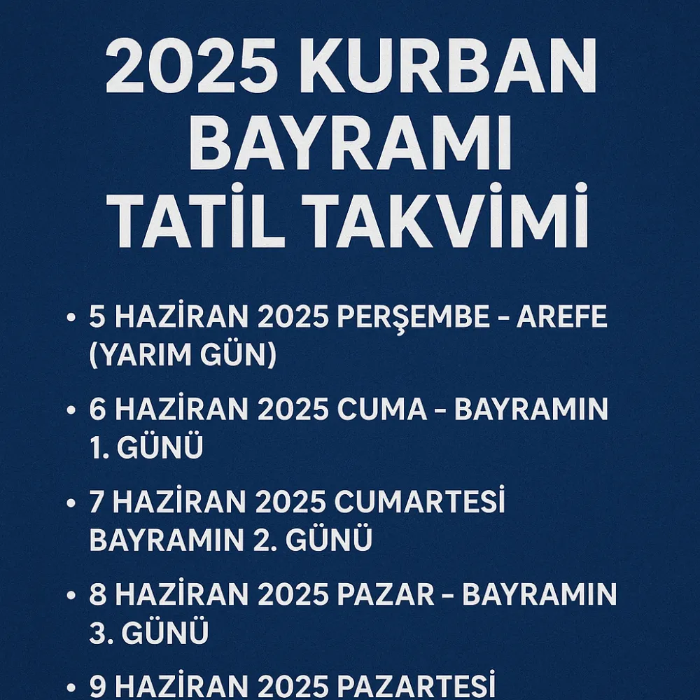 Bu kapsamda ilk resmi açıklamalardan biri Cumhurbaşkanlığı İletişim Başkanı Fahrettin Altun tarafından yapıldı. Altun, sosyal medya hesabından yaptığı bilgilendirmede, 5 Haziran 2025 Perşembe günü öğleden sonra başlayacak olan Kurban Bayramı tatilinin, kamu çalışanları için 6-7-8-9 Haziran tarihlerinde idari izinle devam edeceğini belirtti.
