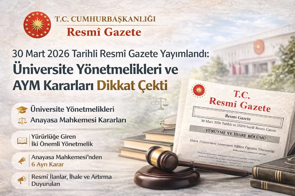 30 Mart 2026 Tarihli Resmî Gazete Yayımlandı: Üniversite Yönetmelikleri ve AYM Kararları Dikkat Çekti