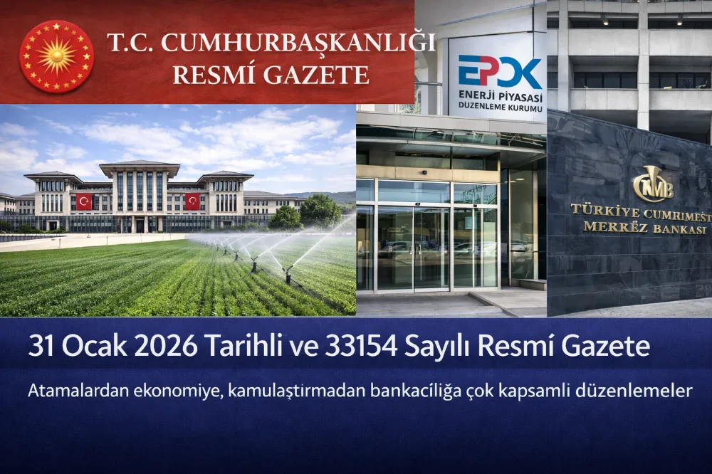 31 Ocak 2026 Tarihli Bugün ve 33154 Sayılı Resmî Gazete Yayımlandı
