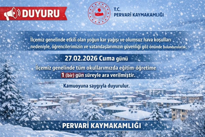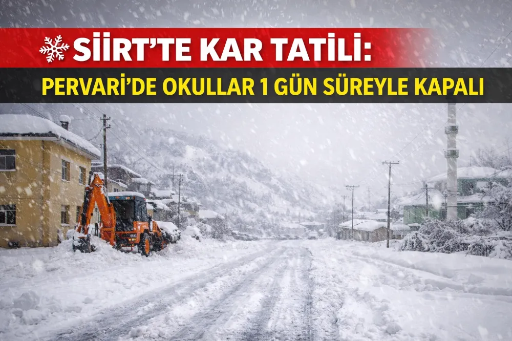 Siirt’te etkisini sürdüren yoğun kar yağışı ve olumsuz hava koşulları nedeniyle Pervari ilçesinde eğitim-öğretime 1 gün ara verildi.