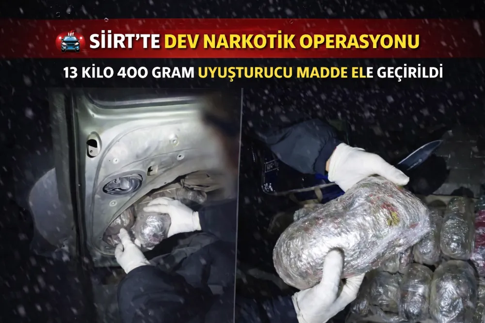 Siirt’te narkotik ekipleri tarafından gerçekleştirilen operasyon kapsamında 13 kilo 400 gram uyuşturucu madde ele geçirildi.