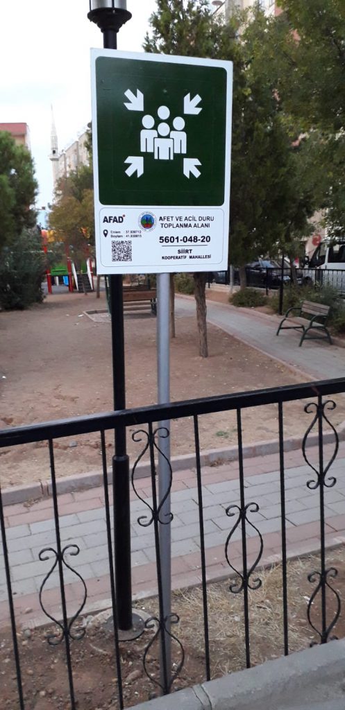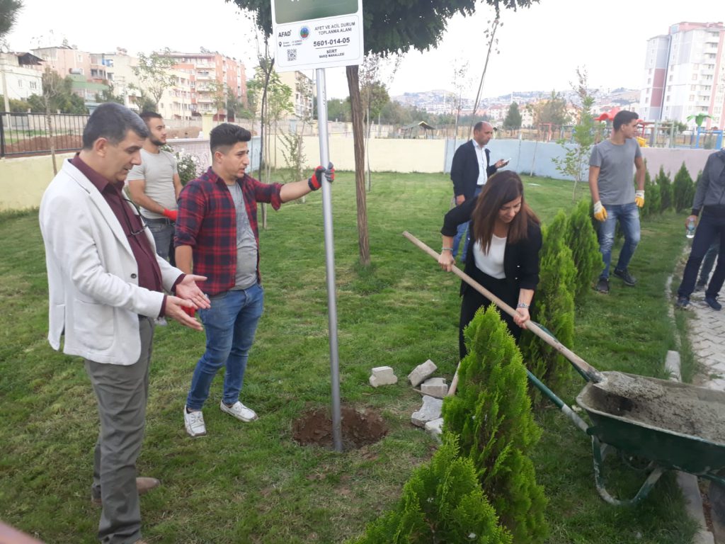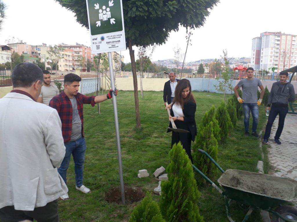 Siirt İlinde yaşanabilecek doğal afetler ve acil durumlara karşı gerekli tedbirleri alma çalışması yapıldı. Deprem başta olmak üzere olası bir afet durumunda, vatandaşların güvenli bir yerde toplanabilmesi için gerekli alanlar Siirt Belediyesi tarafından belirlendi. Bu doğrultuda Siirt Belediyesi vatandaşların can güvenliği için halkın toplanabileceği 22 noktada acil durum toplanma alanı tabelası montaj çalışması gerçekleştirdi.