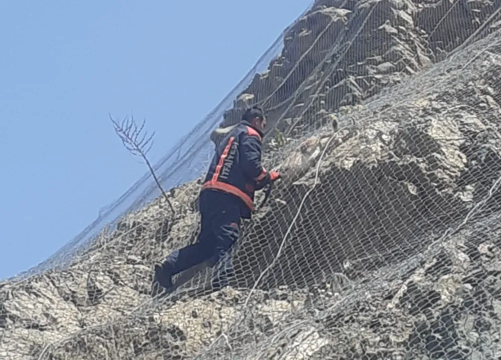 Malatya'nın Pütürge ilçesinde heyelan riskine karşı yerleştirilen çelik ağlara takılan iki yaban keçisi, itfaiye ekipleri tarafından kurtarıldı.