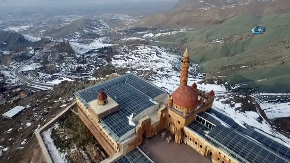 Ağrı’da bulunan ve Osmanlı döneminin en önemli yapılarından biri olarak kabul edilen tarihi İshak Paşa Sarayı, dron ile görüntülendi.