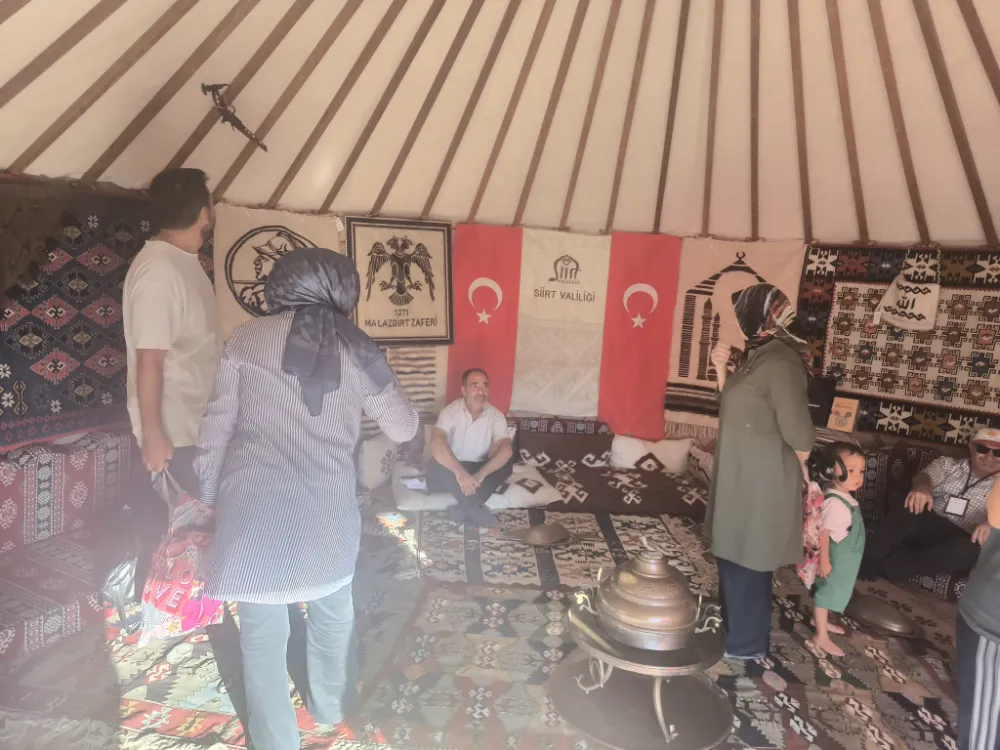 Kutlamalar kapsamında Siirt Valiliği tarafından kurulan oba çadırı, ziyaretçilerden yoğun ilgi gördü. Çadırda Siirt’in kültürel değerleri, yöresel lezzetleri ve tarihî mirası tanıtıldı. Vatandaşlar hem ikramlardan faydalandı hem de Siirt’in tarihî ve kültürel zenginlikleri hakkında bilgi aldı.