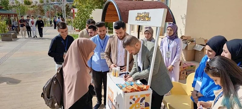 Alma, beraberinde İl Gençlik Kolları Başkanı Tarık Atlı ile "Kampüse hoş geldin" standını ziyaret etti.