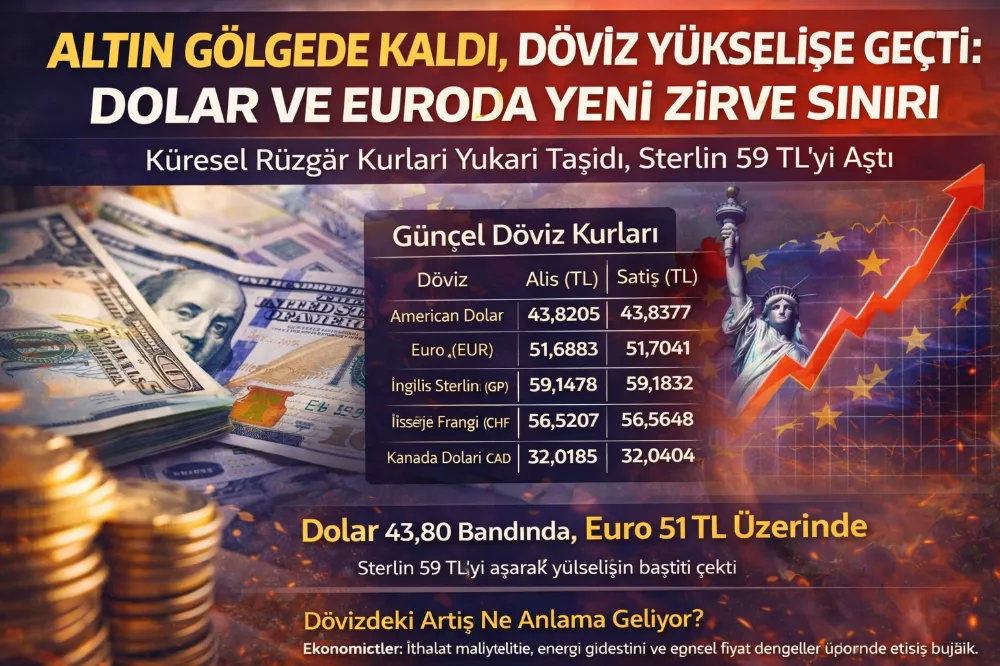 Dolar 43,83 TL seviyesinde işlem görürken, euro 51,70 TL bandında seyrediyor. Sterlin 59 TL’yi aşarak en yüksek seviyeye yaklaşan para birimlerinden biri oldu.