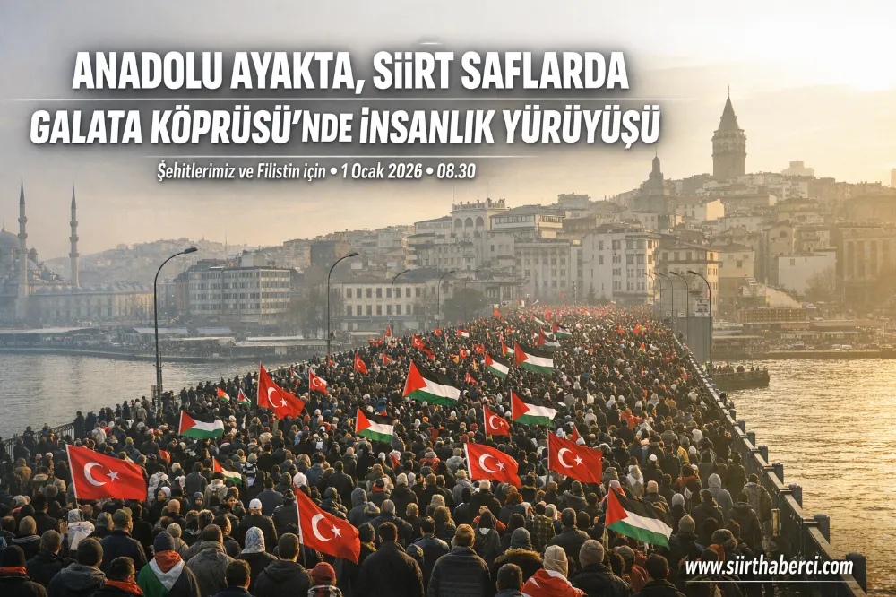 Yılın ilk gününde vicdanın ve insanlığın sesi İstanbul’dan yükselecek. 1 Ocak 2026 sabahı Galata Köprüsü, sadece İstanbul’un değil, tüm Türkiye’nin buluşma noktası olacak. Doğudan batıya, kuzeyden güneye; Siirtlilerin de güçlü katılımıyla farklı şehirlerden gelen binlerce insan, şehitlerimize vefa ve Filistin halkına destek için aynı safta yürüyecek.