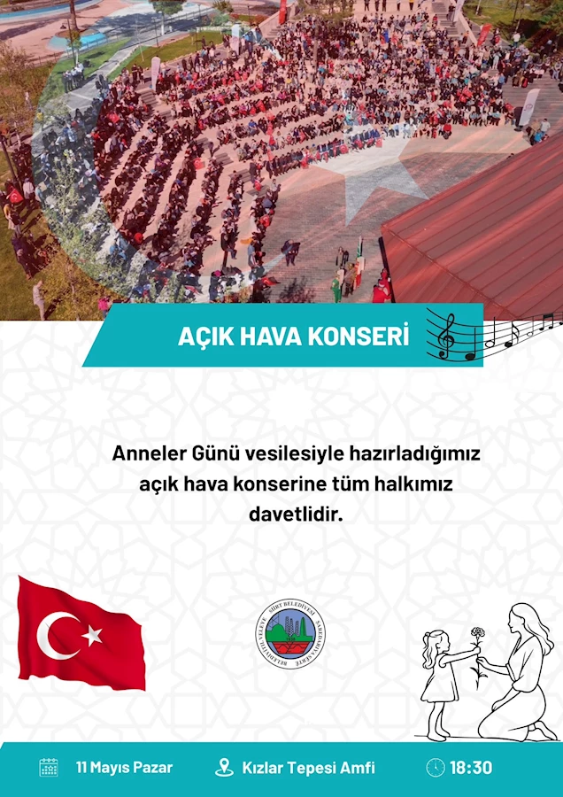 Siirt Belediyesi, Anneler Günü’ne özel anlamlı bir etkinlik düzenliyor. “Aile Yılı” kapsamında gerçekleştirilecek olan Açık Hava Konseri, 11 Mayıs Pazar günü saat 18.30’da Siirt Belediyesi Amfi Tiyatro’da gerçekleşecek.