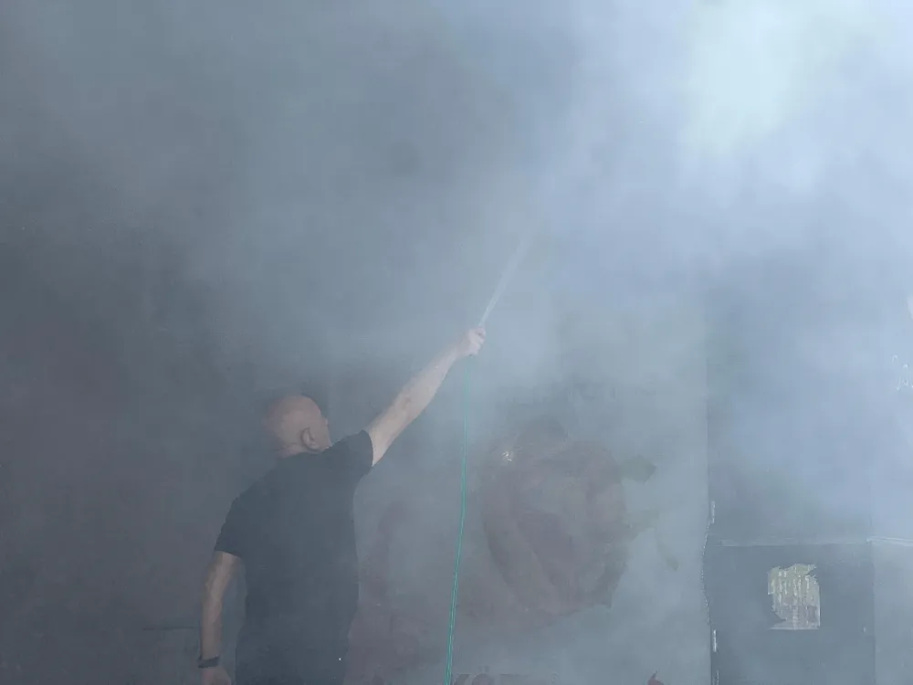 Erzurum'da iş yerinin bacasında çıkan yangına ilk müdahaleyi esnaf su hortumuyla yaptı.