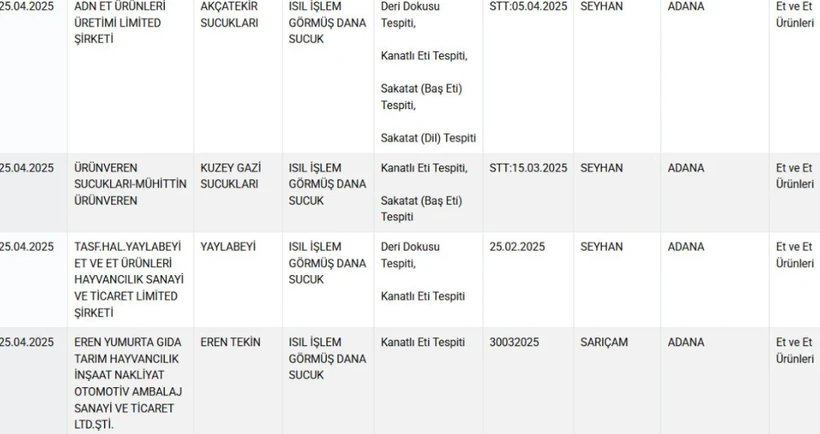 Tarım ve Orman Bakanlığı'nın halk sağlığını koruma amacıyla yürüttüğü gıda denetimleri aralıksız sürüyor. Bakanlık, 25 Nisan 2025 Cuma günü güncellediği taklit ve tağşiş listesinde, birçok ünlü sucuk markasını kamuoyuyla paylaştı. Laboratuvar ortamında yapılan analizlerde, ürünlerin içeriğinde ciddi uygunsuzluklar tespit edildi.Güncellenen listede, toplam 8 sucuk markasının ürünlerinde kanatlı eti kullanımı başta olmak üzere çeşitli hilelere rastlandı. Vatandaşın sucuk diye satın aldığı ürünlerde, et yerine farklı içeriklerin kullanıldığı belirlendi.Denetim sonuçlarına göre, birçok sucuk markasının ürünlerinde kırmızı et yerine kanatlı eti kullanıldığı, bazı ürünlerde ise et oranının yanıltıcı şekilde düşük gösterildiği tespit edildi. Bakanlık, tüketicileri daha dikkatli olmaları konusunda uyardı ve şeffaflık ilkesine bağlı kalarak uygunsuzluk tespit edilen firmaları resmi internet sitesinde yayımladı.Tarım ve Orman Bakanlığı yetkilileri, gıda güvenliği denetimlerinin sıkı şekilde devam edeceğini vurgularken, halk sağlığını tehdit eden ürünlere karşı tolerans gösterilmeyeceğinin altını çizdi.