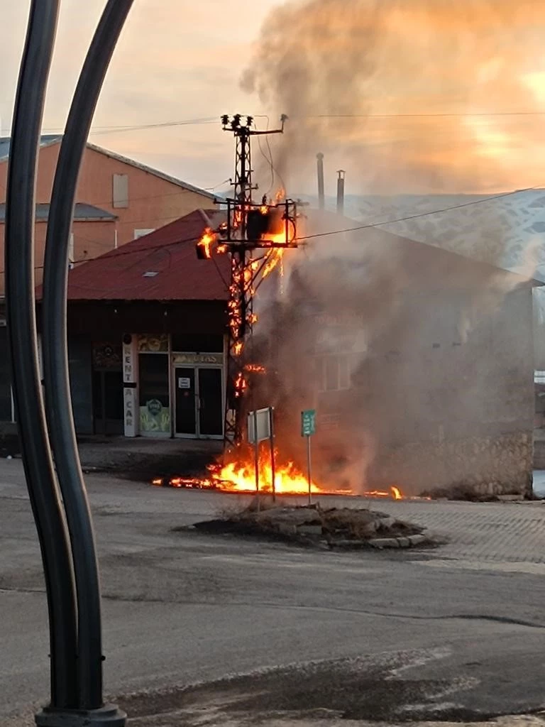 Van’ın Başkale ilçesinde sabah saatlerinde bir elektrik direğinde henüz bilinmeyen bir nedenle yangın çıktı.