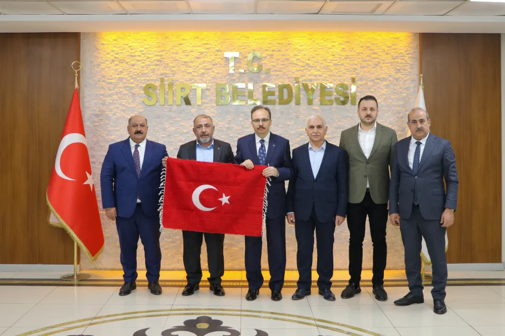 AK Parti Siirt Milletvekili Mervan Gül, İl Başkanı Av. Bahri Caner Özturan, Baykan Belediye Başkanı Ekrem Erdem, Solmaz Grup Yönetim Kurulu Başkanı Seythan Solmaz ve Eruh Belediye Başkanı Cevher Çiftçi, Siirt Valisi / Belediye Başkanvekili Dr. Kemal Kızılkaya'yı Siirt Belediyesindeki makamında ziyaret etti. Karşılıklı Fikir ve Alışverişlerin görüşüldüğü ziyaret sohbet havası şeklinde devam ederken Baykan Belediye Başkanı Ekrem Erdem, ilçenin ihtiyaçları, Belediyenin devam eden projeleri ve hayata geçirilmesi planlanan çalışmalar üzerine verimli istişarelerde bulundu. Ziyaretten duyduğu memnuniyeti dile getiren Vali/Belediye Başkanvekili Dr Kemal Kızılkaya, çalışmalarında başarılar diledi.Ziyaret, hatıra fotoğrafı çekimiyle sona erdi.