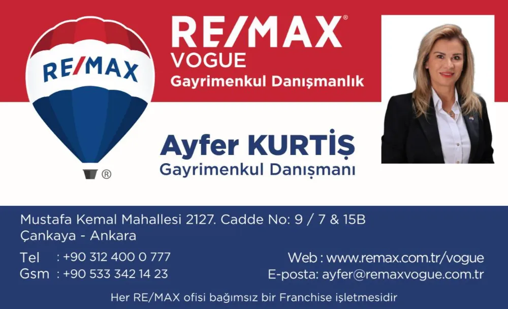 RE/MAX çatısı altında Ankara Çankaya’da faaliyetlerini sürdüren Ayfer Kurtiş, profesyonel yaklaşımı, güven odaklı hizmet anlayışı ve yatırımcıyı doğru yönlendiren vizyonuyla öne çıkıyor.