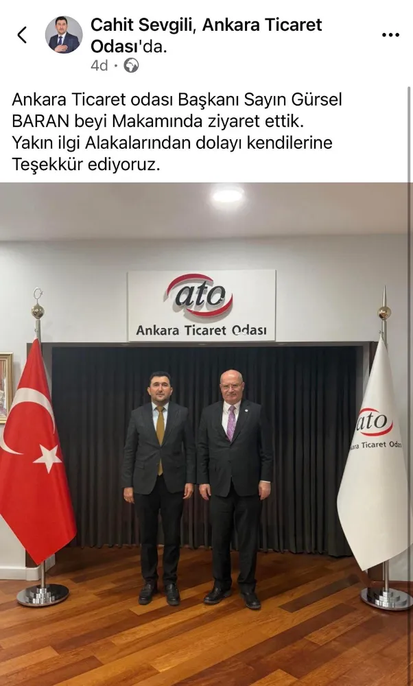 Kurtalan önceki dönem Siirt İl Genel Meclis Üyesi Cahit Sevgili, Ankara’daki temasları kapsamında Ankara Ticaret Odası Başkanı Gürsel Baran’ı makamında ziyaret etti.