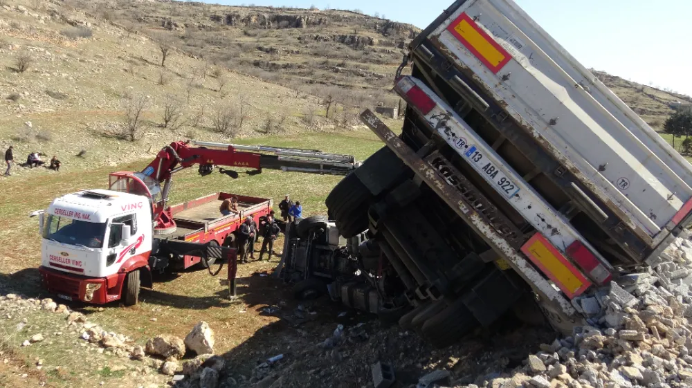 Batman'ın Gercüş ilçesinde sürücüsünün direksiyon hakimiyetini kaybettiği briket yüklü tır, kontrolden çıkarak şarampole yuvarlandı. Kazada 1 kişi yaralandı.