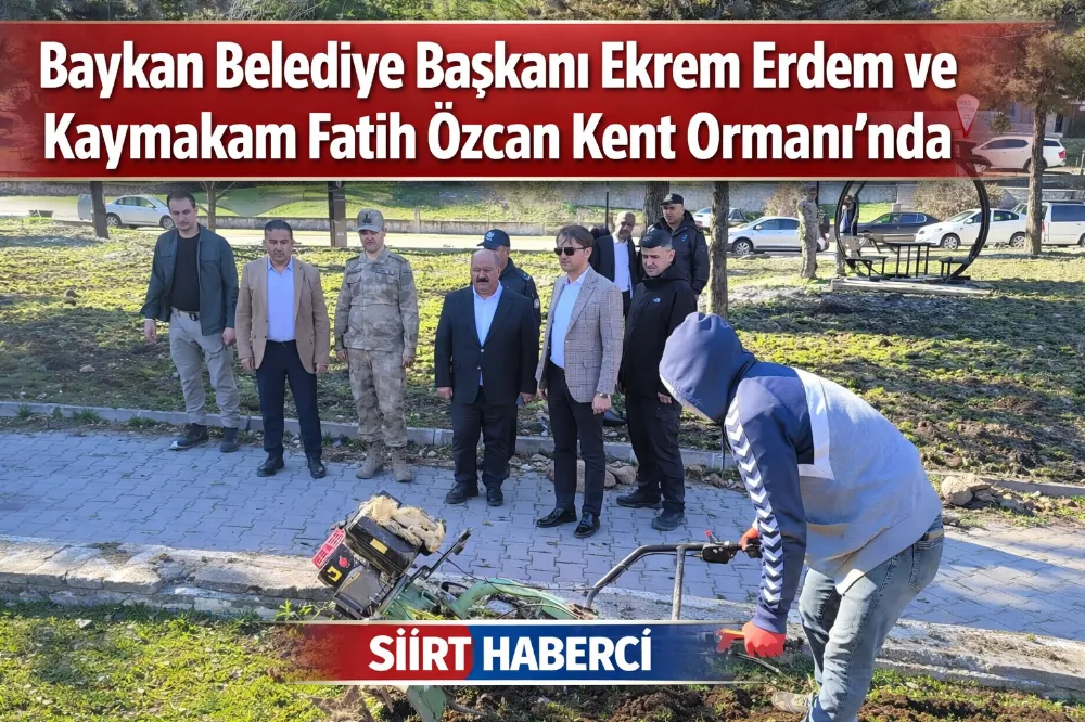 Baykan Belediye Başkanı Ekrem Erdem ve Baykan Kaymakamı Fatih Özcan, Kent Ormanı’nda yürütülen çalışmaları sahada inceleyerek yetkililerden bilgi aldı.