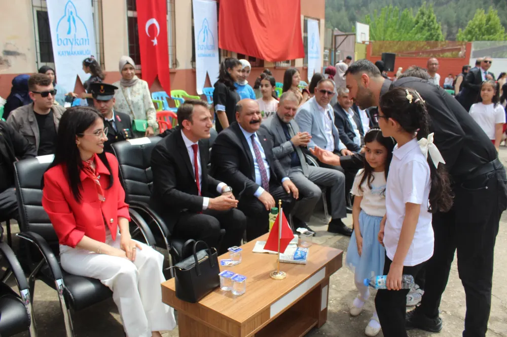 Baykan Belediye Başkanı Ekrem Erdem , 23 Nisan Ulusal Egemenlik ve Çocuk Bayramı münasebetiyle Cumhuriyet okulunda düzenlenen programa katıldı.Baykan Belediye Başkanı Ekrem Erdem, 23 Nisan Ulusal Egemenlik ve Çocuk Bayramı münasebetiyle düzenlenen programa katılım gösterdi. Başkan Cumhuriyet Ortaokulu bahçesinde düzenlenen kutlama programına katıldı.Okul yönetimi ve öğrenciler tarafından coşkuyla karşılanan Başkan Erdem, öğrencilerle bir araya gelerek bayramlarını kutladı ve onlarla keyifli anlar yaşadı. Okul etkinlikleri kapsamında öğrencilerin sergilediği gösterileri izleyen Başkan Erdem, öğrencilere başarılar dileyerek onların heyecanına ortak oldu. Öğrencilerle hatıra fotoğrafları çektiren Başkan Erdem , çocukların neşesine ortak olmaktan büyük mutluluk duyduğunu ifade etti. Öğretmen ve öğrenciler Belediye Başkanı Ekrem Erdem’e katılımlarından dolayı teşekkür ederek, okulların ve öğrencilerin ziyaretinden dolayı memnuniyetlerini dile getirdiler. 23 Nisan kutlamaları, hem anlamlı törenlerle hem de çocukların coşkulu etkinlikleriyle dolu geçerken, bu özel günde çocukların mutluluğu etrafında birleşen herkesin yüzünde gülümseme oluşturdu.Kutlama programına Baykan Kaymakamı Fatih Özcan, Baykan Belediye Başkanı Ekrem Erdem , ilçe protokolü üyeleri, öğretmenler ve vatandaşlar da katıldı. Tören, çocukların sevinci ve coşkusu eşliğinde son buldu.