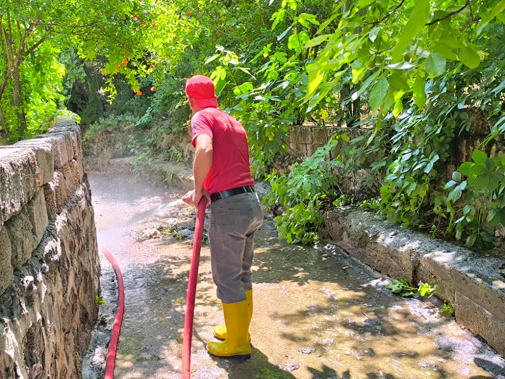 Baykan Belediyesi, bayram sonrası ilk mesai günlerinde İnönü Mahallesi’nde dere yataklarını yıkama ve temizleme çalışması gerçekleştirdi.