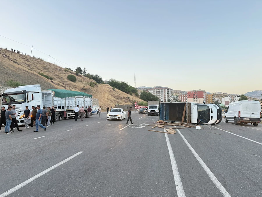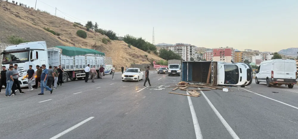 Kamyonet Yan Yattı, Yol Kapanma Noktasına Geldi