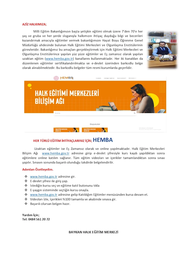 Baykan Halk Eğitim Merkezinden HEMBA Açıklaması