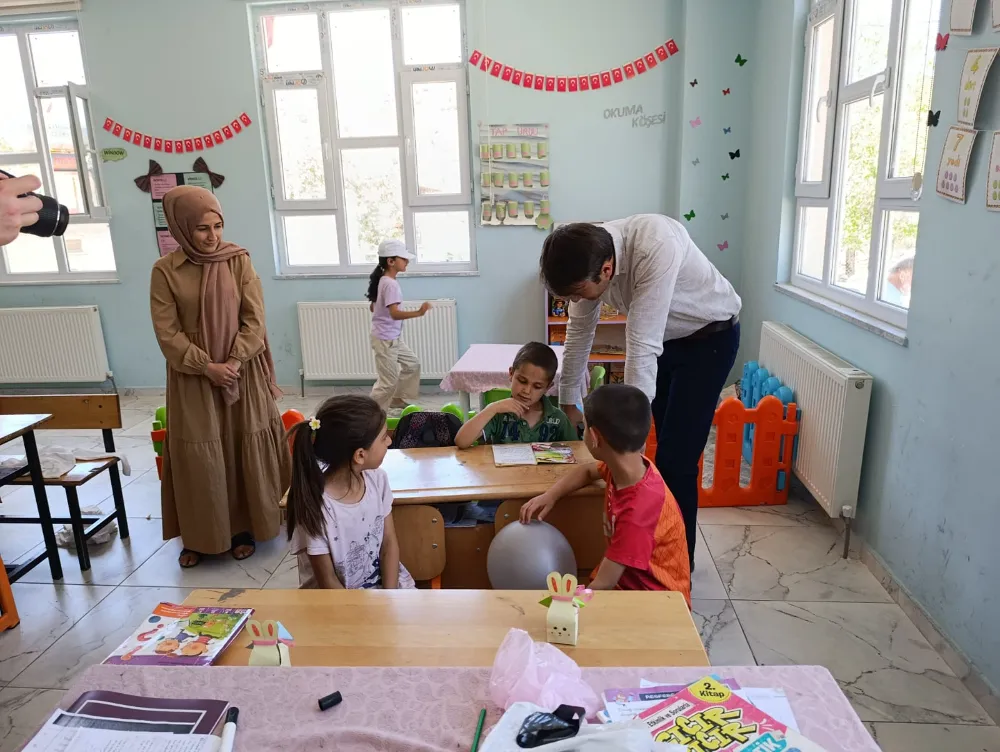 Sınıfları tek tek gezen Kaymakam Özcan, minik öğrencilerle sohbet etti, kitaplarını inceledi ve hediyeler takdim etti. Okuldaki sınıf ortamı ve öğrencilerin heyecanı dikkat çekerken, sıcak diyaloglar objektiflere de yansıdı.