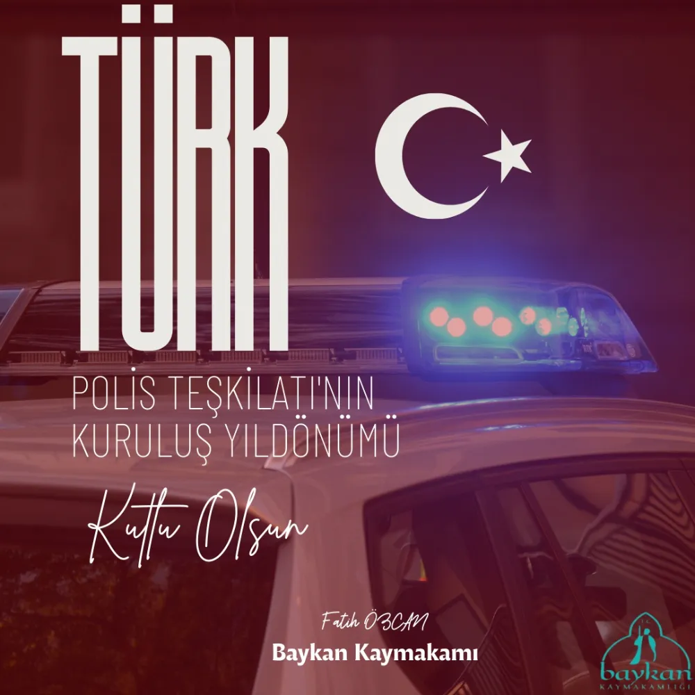 Baykan Kaymakamı Fatih Özcan, Polis Haftası ve Türk Polis teşkilatı’nın 180. kuruluş yıldönümü mesajı yayımladı. Kaymakam Özcan, mesajında; Toplumumuzun huzur ve güvenliğini temin eden, gece gündüz demeden büyük bir özveriyle görev yapan emniyet teşkilatımızın 180. kuruluş yıl dönümünü ve Polis Haftası’nı en içten dileklerimle kutluyorum. Milletimizin can ve mal güvenliği için fedakârca çalışan tüm emniyet mensuplarımıza şükranlarımı sunuyor, görevleri başında şehit olan kahraman polislerimizi rahmetle, gazilerimizi minnetle anıyorum. Bu vesileyle, ülkemizin dört bir yanında görev yapan tüm polislerimize sağlık, başarı ve kolaylıklar diliyorum. Türk Polis Teşkilatımızın 180. Kuruluş Yıl Dönümü Kutlu Olsun. Dedi.