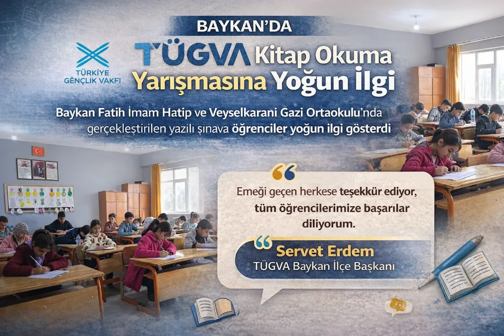 Türkiye Gençlik Vakfı (TÜGVA) tarafından düzenlenen kitap okuma yarışmasının yazılı sınavı Baykan’da iki okulda gerçekleştirildi.