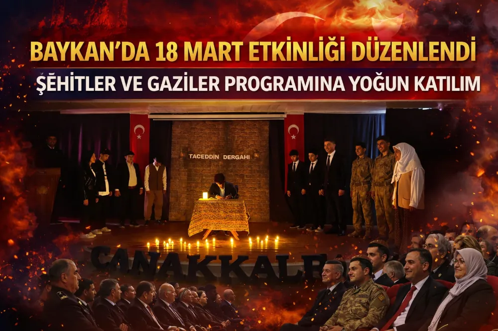 Veysel Karani Çok Programlı Anadolu Lisesi’nde gerçekleştirilen programa Baykan Kaymakamı Fatih Özcan, güvenlik güçleri, kurum amirleri, şehit ve gazi aileleri, sivil toplum kuruluşlarının temsilcileri, öğretmenler, öğrenciler ve vatandaşlar katıldı. Program boyunca katılımcılar, Çanakkale’de vatan uğruna can veren kahraman şehitlerin fedakârlıklarını bir kez daha hatırladı.