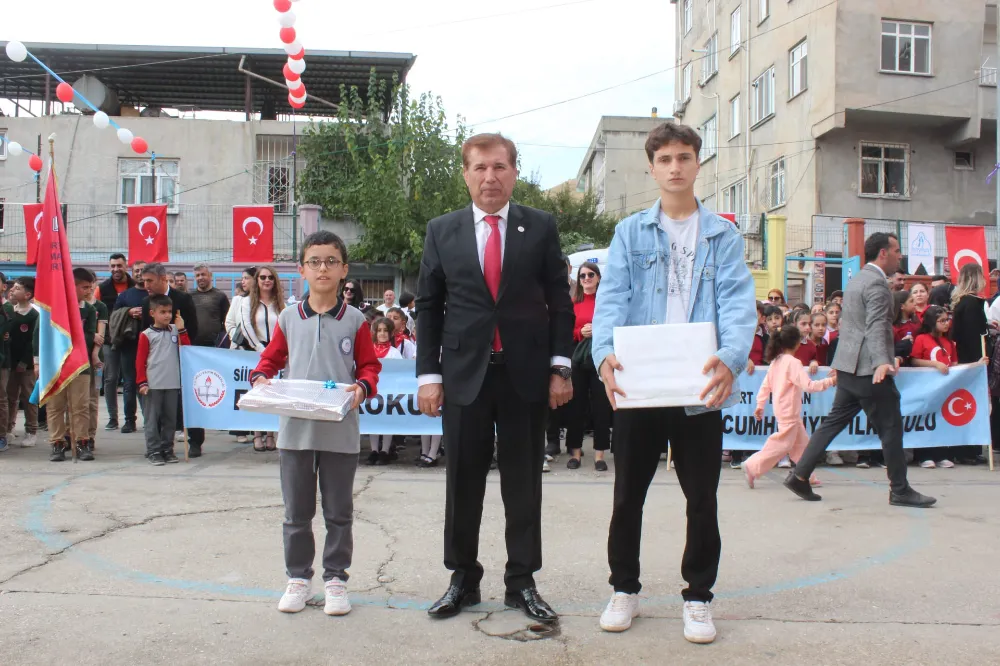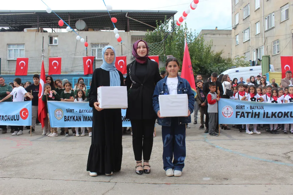 Baykan’da 29 Ekim Cumhuriyet Bayramı, büyük bir coşku ve milli heyecanla kutlandı. Cumhuriyet Ortaokulu bahçesinde düzenlenen törene vatandaşlar yoğun ilgi gösterdi. İlçe adeta kırmızı beyaza bürünürken, tören alanında ellerinde Türk bayraklarıyla toplanan öğrenciler ve halk Cumhuriyet’in 102. yılını büyük bir gururla karşıladı.
