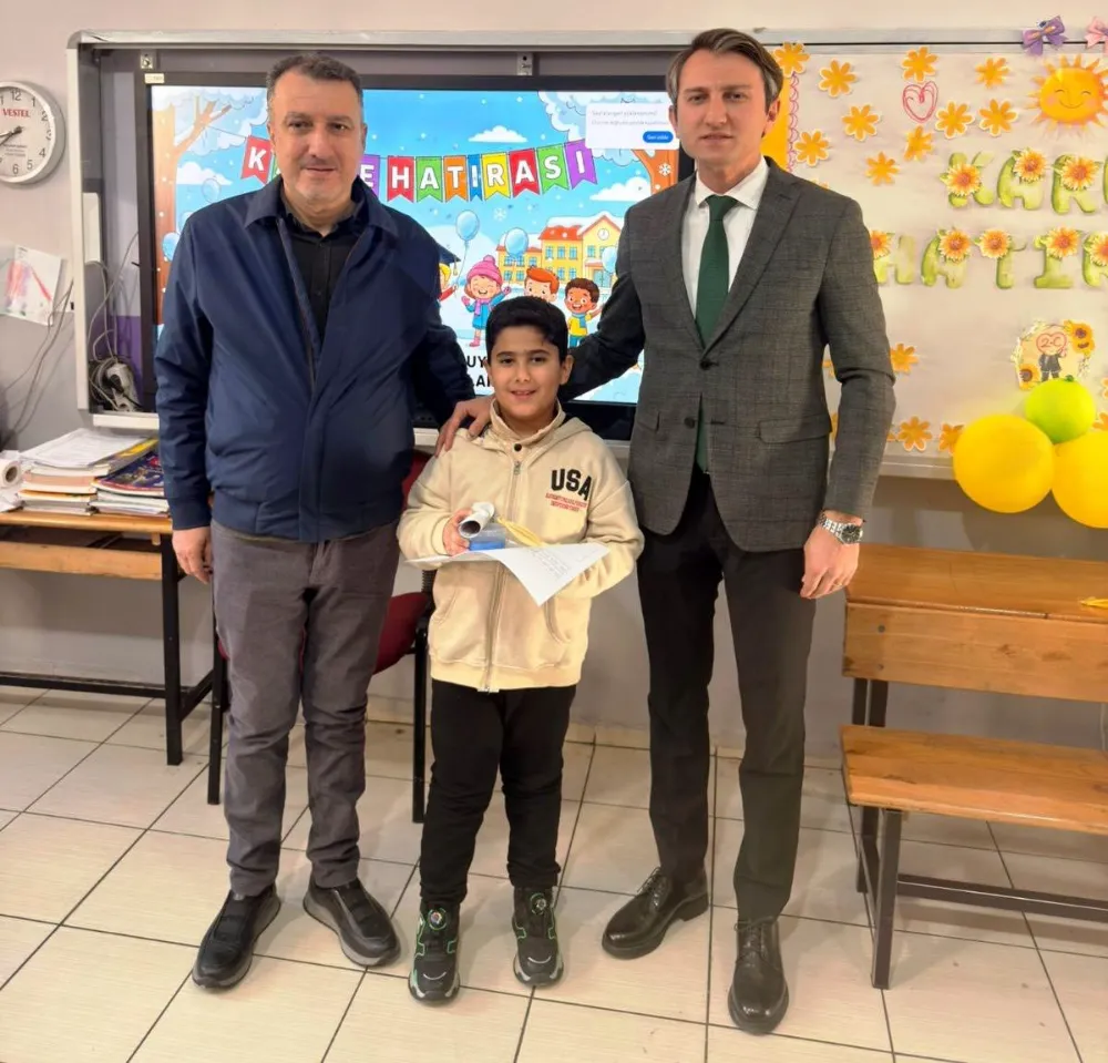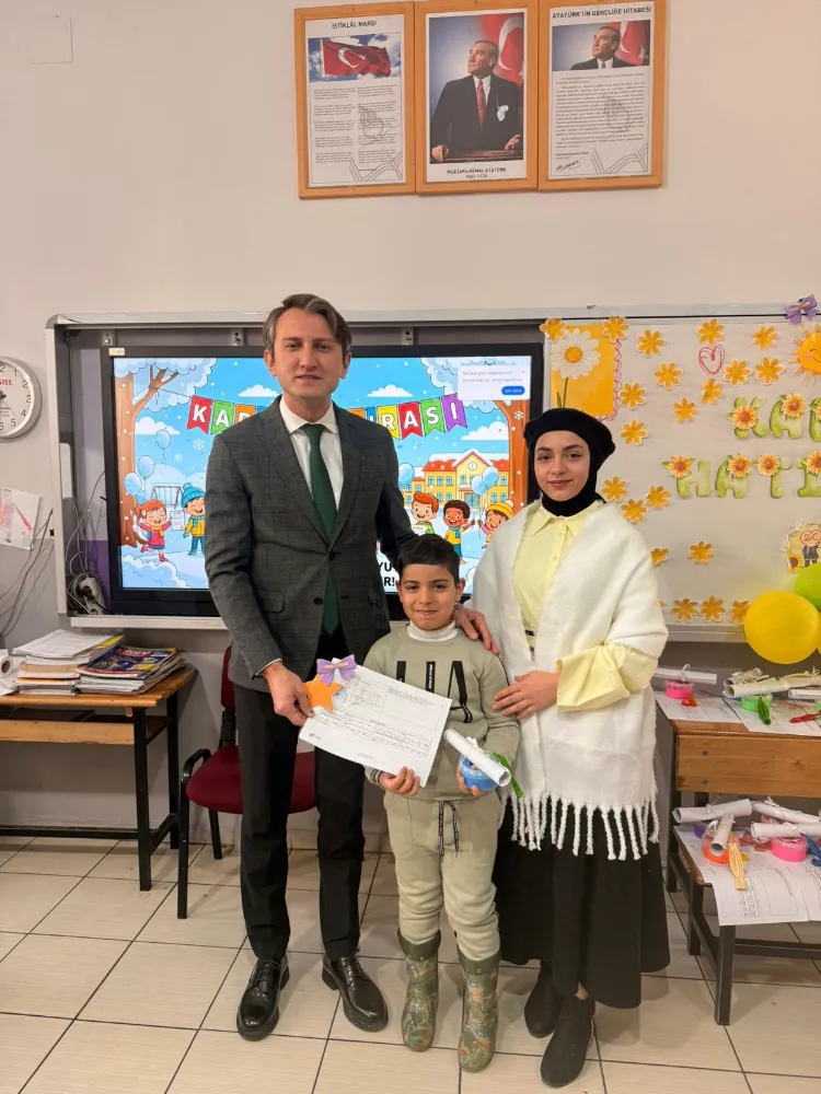 Karne dağıtım töreni kapsamında Fatih Özcan, Cumhuriyet İlkokulu’nda düzenlenen programa katılarak öğrencilerin heyecanına ortak oldu. Sınıfları tek tek ziyaret eden Kaymakam Özcan, öğrencilerle yakından ilgilenerek karnelerini takdim etti.
