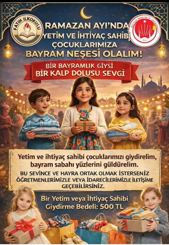 Fatih İlkokulu ve Baykan İmam Hatip Ortaokulu Müdürü Abdurrahman Gündüz, kampanyanın amacının çocukların bayram sevincini birlikte yaşamak olduğunu belirterek şu mesajı verdi: “Ramazan ayı, paylaşmanın ve yardımlaşmanın en güzel yaşandığı zamanlardan biridir. Yetim ve ihtiyaç sahibi çocuklarımızın bayram sabahına yeni kıyafetleriyle ve yüzlerinde bir tebessümle uyanmalarını istiyoruz. Bu anlamlı çalışmaya destek veren tüm hayırseverlere şimdiden teşekkür ediyoruz.”