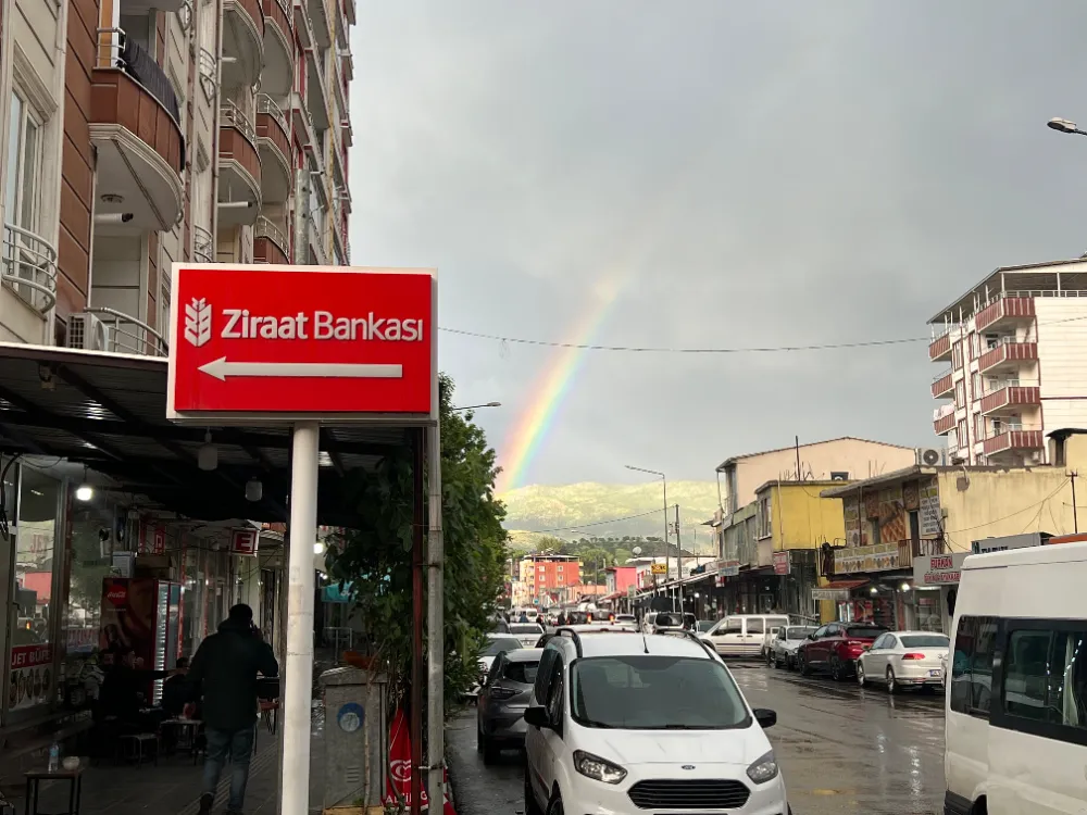 Özellikle çiftçiler için endişe yaratan dolu yağışı sonrasında beliren bu doğa olayı, kısa sürede sosyal medyada büyük ilgi gördü. Bölge halkı, doğanın bu nadir ve etkileyici anını cep telefonlarıyla kayıt altına alarak anı ölümsüzleştirdi.