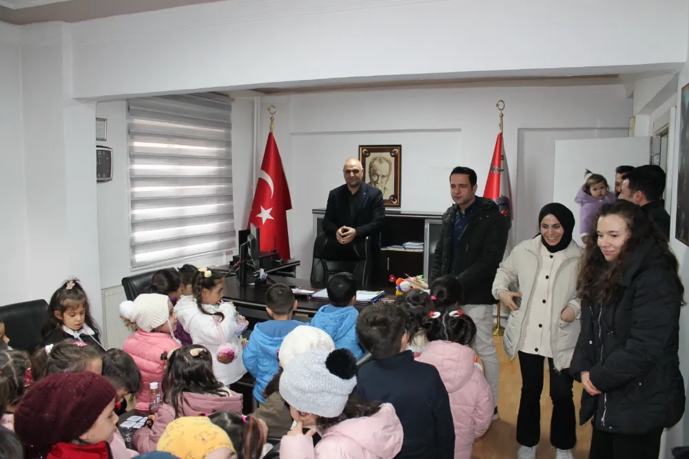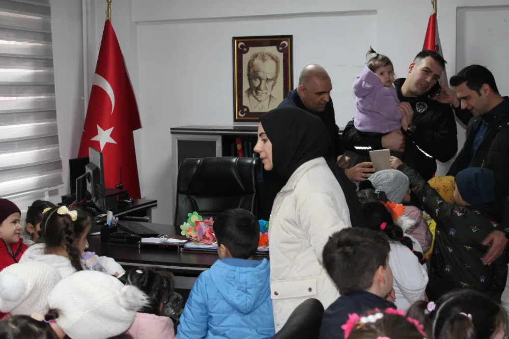 Samimi ve sıcak yaklaşımıyla miniklerin gönlünü kazanan Dumlu ve emniyet personeli, ziyaret boyunca öğrencilerle yakından ilgilenerek örnek bir ev sahipliği sergiledi.