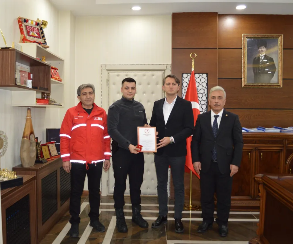 Baykan’da Jandarma Uzman Çavuş Samet Tezcan’a Türk Kızılayı’ndan Bronz Madalya Beratı