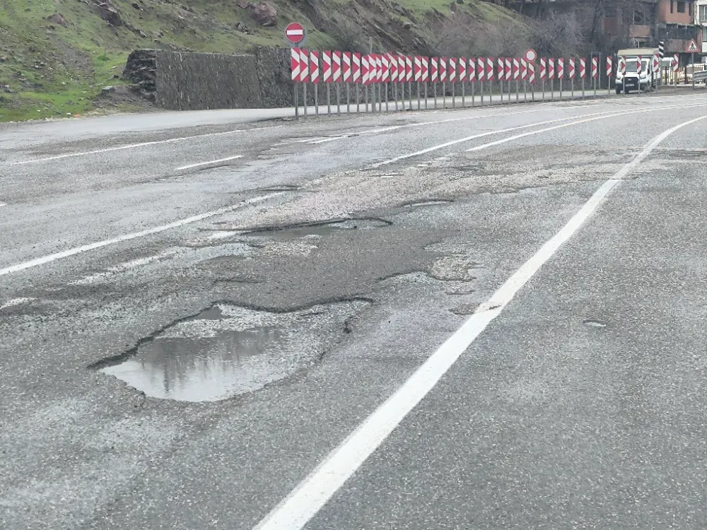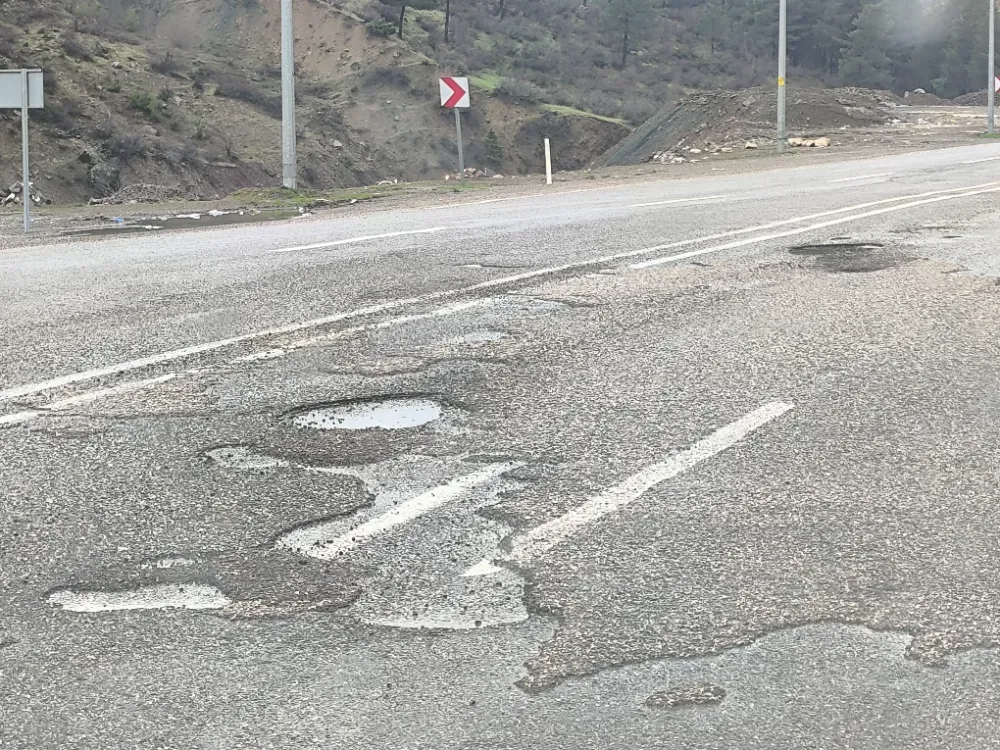 Yol yüzeyinde oluşan çukurlar nedeniyle araç sürücüleri zor anlar yaşarken, bazı araçlarda maddi hasar meydana geldiği öğrenildi.